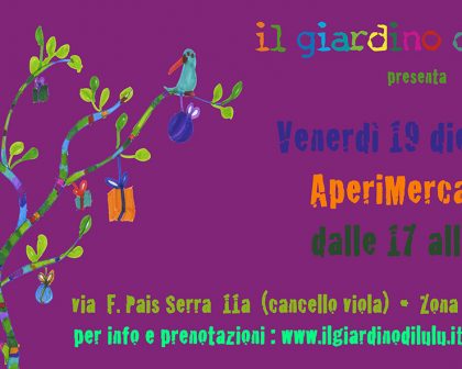 Find out moreVenerdì 19 Dicembre dalle 17 alle 20 al Giardino di Lulù ci sarà l’ “AperiMercatino”, un aperitivo con molte cose vendita…non giochi usati ma creazioni uniche delle nostre mamme artigiane. Vi aspettiamo! Per info e prenotazioni: www.ilgiardinodilulù.it 06 43418005